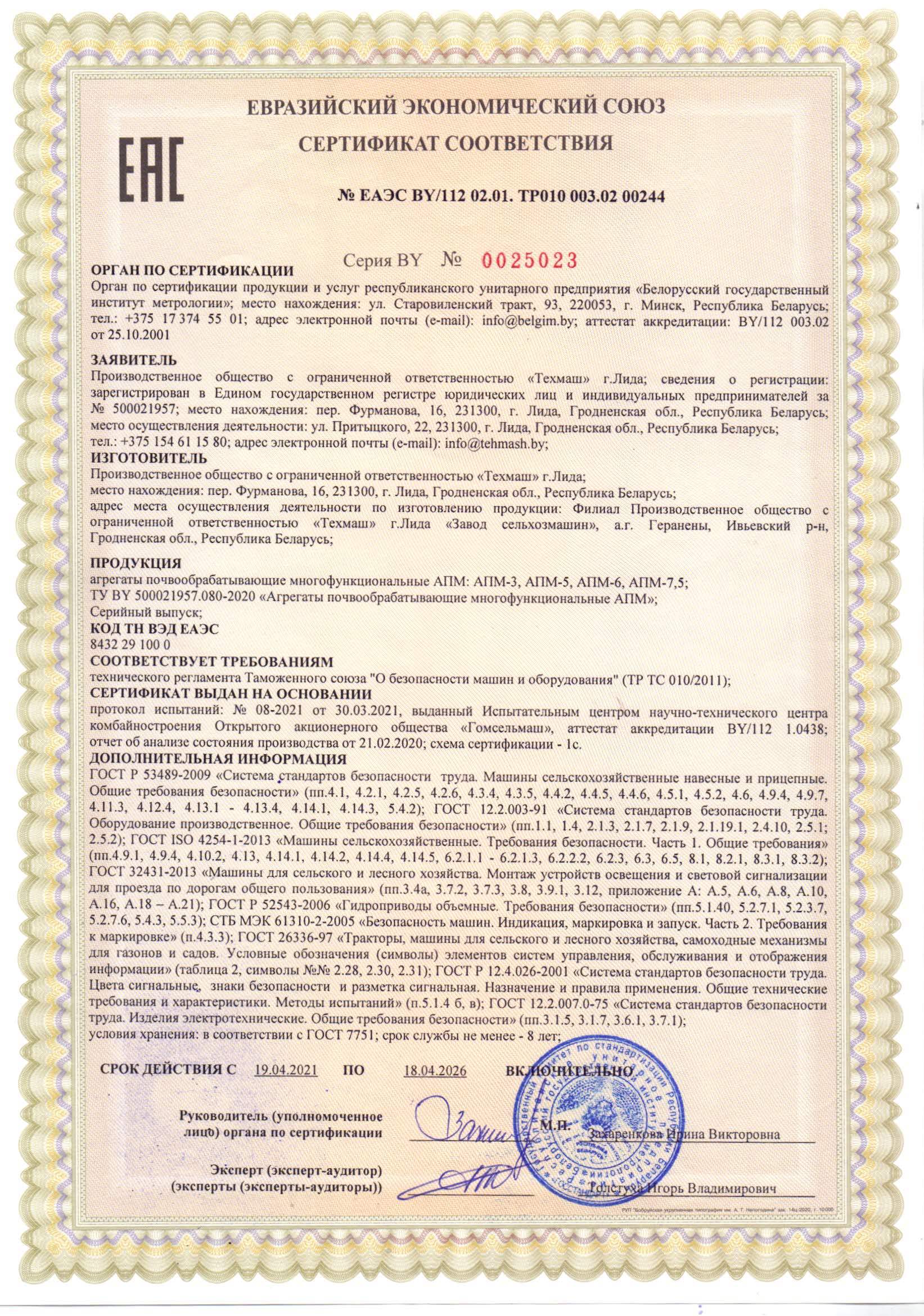 Сертификаты соответствия ЕАЭC
