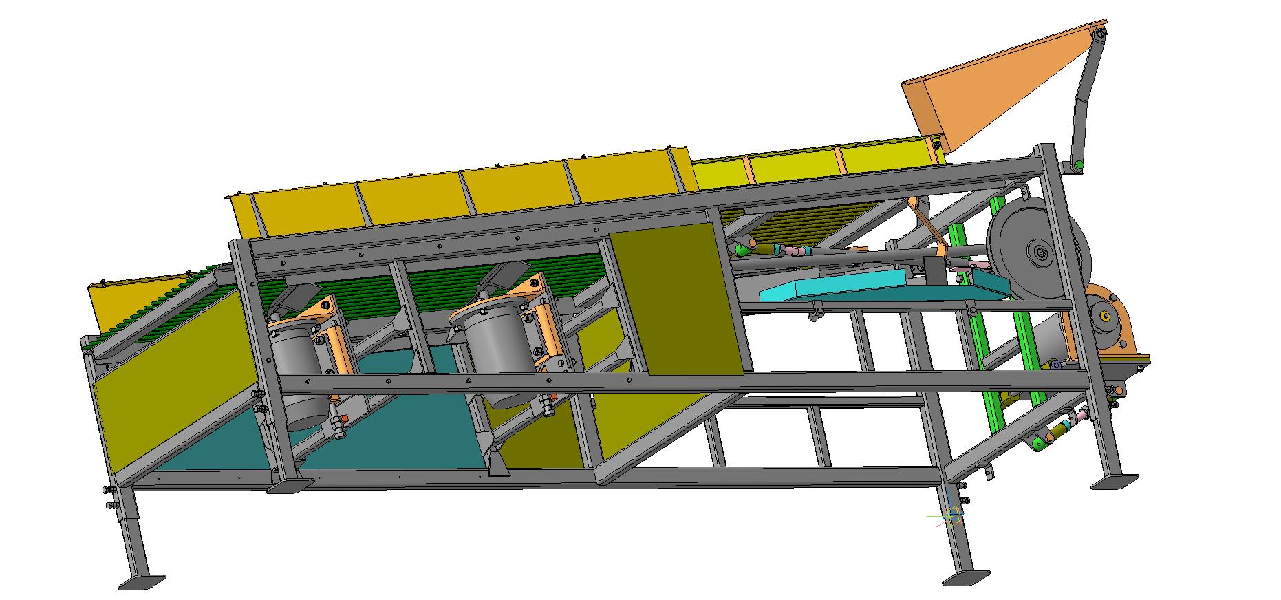 Основным рабочим органом машины являются ножи, приводимые во вращение двумя электродвигателями. Лопасти ножей создают воздушный поток, ориентирующий луковицу на сите машины, и производят удаление перьев и верхнего слоя шелухи.